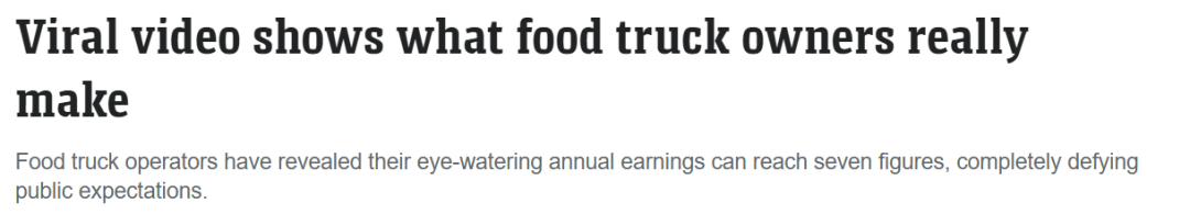 不外虽然视频展现了成功餐车可不雅的停业额,但Andersen也提示大师,这只是毛收入,餐车还有昂扬的运营成本,例如厨房房钱、车辆、汽油、安全、许可证、人员工资、食物原料和营销等。